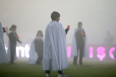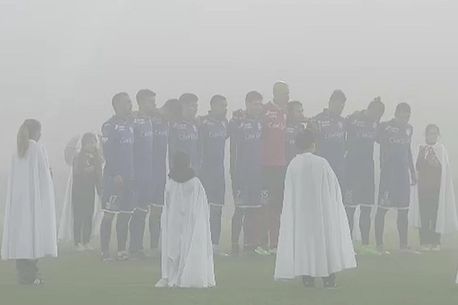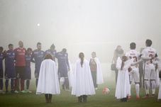 Înainte de startul jocului, la mijlocul terenului s-au strâns mai mulți copii și tineri cu pelerine albe și care țineau câte o lumânare în mână. La marginea terenului, în spatele unei porți, s-a format o cruce din lumânări.
