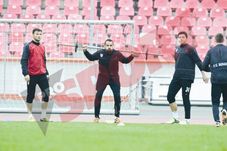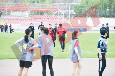 La ora 13:53, Dănciulescu și compania ies pe teren, în frunte cu Dorinel. Un minut de discuții pe marginea terenului, după care începe încălzirea. Cinci minute se aleargă ușor, iar apoi se trece la exerciții mai intense. Într-un sfert de oră, roș-albilor începe le iasă aburi pe gură. Munteanu, alături de Yuksel Yesilova, secundul său și cel care coordonează practic pregătirea fizică, este tot timpul printre fotbaliști, și, fie că-i ceartă, îi încurajează sau râde cu ei, încearcă să-i țină permanent conectați.