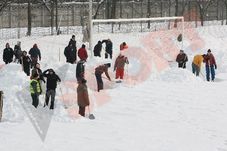 199 de deținuți ai Penitenciarului Jilava au deszăpezit ieri gazonul de la Mogoșoaia, acolo unde Steaua se va pregăti în zilele rămase până la meciul cu Twente.