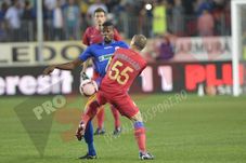 Roș-albaștrii au însă anvergură și chiar dacă morișca pregătită de Reghecampf dă în gol când și când, calitatea jucătorilor poate fi decisivă și atunci când contorul greșelilor neforțate făcute de steliști este dat peste cap. Chipciu dă primul tonul, ca mai mereu în ultima vreme. Șutează de la 16 metri (23), Bornescu respinge neconvingător, dar Nikolic, venit pe respingere, îl ia la țintă pe portar, iar Galamaz respinge de pe linia porții. Doar un avertisment palid, însă. Vulcanul erupe în minutul 38, Bokila fiind instigatorul. Acesta înscrie simplu, de la 7 metri, după ce Cristescu a profitat de gafa în marcaj făcută de Georgievski și a reușit să-i recentreze congolezului mingea bine așezată de Boudjemaa. Isteria se stinge rapid. Tănase se strecoară în centru, înțeapă magistral o minge pentru Chipciu, vitezistul trage iar în Bornescu, dar Nikolic nu irosește și a doua șansă pe care portarul i-o oferă și împinge mingea în plasă (45).