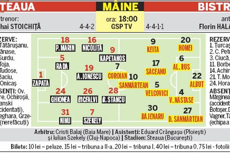 cu Bistrița. În schimb, Golanski și Tănase vor reintra cu Poli