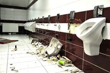 Așa arăta grupul sanitar de la tribuna a doua a stadionului „Constantin Rădulescu” după meciul cu U Cluj de sezonul trecut. Foto: Dan Tăuțan