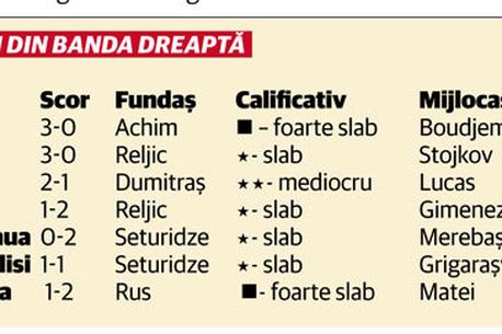 *Achim, Dumitraș, Reljic, Seturidze și Rus sunt fundașii dreapta care au suferit de pe urma colaborării Latovlevici – Tănase.