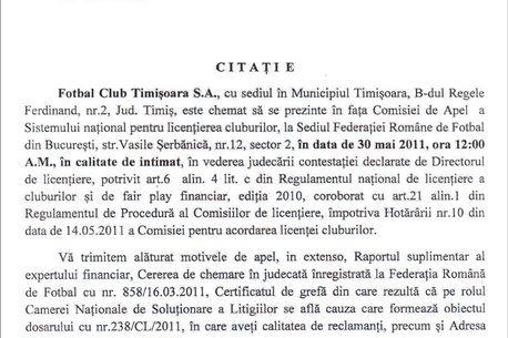 licențiere. Citarea clubului nostru pentru data de 30 mai 2011, în