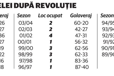 Recordul intern de după Revoluție aparține lui Dinamo, club care a terminat ediția 89/90 cu 96 de goluri marcate