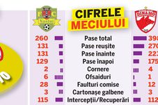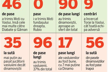 ineficiența paselor dinamoviștilor. 44% dintre ele sunt pase