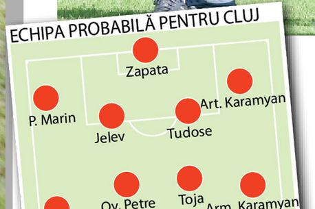 vor fi distribuiți Petre Marin și Artiom Karamyan. Din schemă va