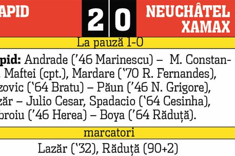 Încă sub efectul plecării lui Săpunaru la Porto, elevii lui Peseiro au început în forță partida contra celor de la Neuchâtel Xamax, locul 8 în ediția trecută de campionat din Elveția.
