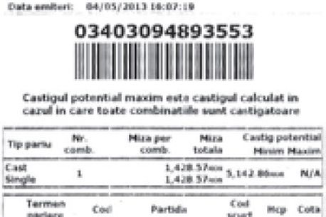Rezultatul partidei a fost 0-0, iar câștigul a fost de aproximativ 5.100 de lei, din care s-au scăzut taxele percepute de stat.