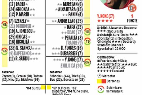 La conferința de presă, italianul a făcut o scurtă caracterizare a câtorva jucători ai săi. „Ghionea trebuia să strângă la faza primului gol. A fost un pic de neatenție. Nicoliță? Mi-a plăcut. A avut atitudine și s-a zbătut. Îmi pare rău că Stancu s-a accidentat. Aș fi vrut să continui jocul cu el, Kapetanos și Surdu. Voiam să-l scot pe Szekely. Onicaș a greșit în prima repriză, dar a revenit în a doua parte a jocului și a evoluat bine. Nu uitați că mijlocul nostru de azi (n.r. ieri) a fost compus din fotbaliști foarte tineri. În privința lui Rada, nu am zis că el va fi noul Goian. Nu l-am inclus în lot pentru că nu ar fi fost corect față de ceilalți jucători. El a fost plecat prin Germania, în timp ce ceilalți au muncit la antrenament”, a explicat italianul.