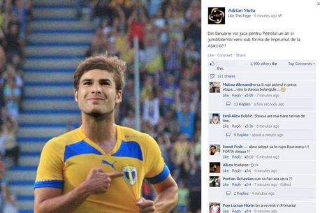 „Din ianuarie voi juca pentru Petrolul un an și jumătate! Voi veni sub forma de împrumut de la Ajaccio!!!”, a fost mesajul postat de Adi Mutu pe contul său de FB.