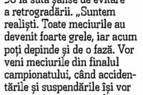 „În momentul de față suferim la finalizare. Atacul nu a mers deloc. Nu suntem mulțumiți de modul în care s-au prezentat jucătorii din avanposturi. În rest, stăm bine pe teren. Păcat că nu reușim să finalizăm situațiile rarisime pe care le avem“.