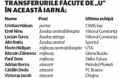 Acasa » Fotbal Intern » Liga 1 » „U” atacă Steaua cu un „Eurofantastic”!** Toate transferurile făcute de „șepci”: