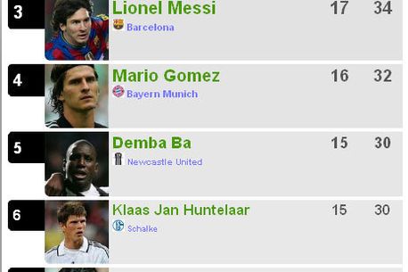 Clasamentul este condus de Cristiano Ronaldo (20 de goluri, 40 de puncte), urmat de Robin Van Persie (17 goluri, 34 de puncte) și Lionel Messi (17 goluri, 34 de puncte).