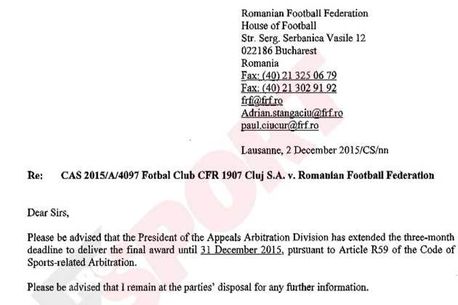 FOTO – Adresa trimisă de TAS Federației Românie de Fotbal