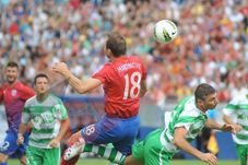 mingea e reținută de portar. Martinovic pare că s-a obișnuit în
