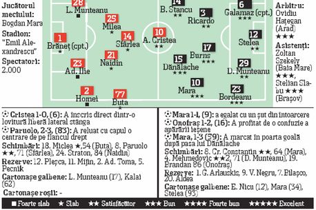 În primele 15 minute s-a scris, practic, istoria meciului. Andrei Cristea a executat înșelător o lovitură liberă de la peste 25 de metri lateral stânga, Stelea a gafat și tabela de marcaj s-a schimbat pentru prima dată. La nici trei minute de la deschiderea scorului, Bogdan Mara a reușit să restabilească egalitatea, după un șut din întoarcere. Trupa lui Dan Petrescu a dat lovitura decisivă chiar prin fostul jucător al ieșenilor, Marius Onofraș, care l-a executat pe Brăneț cu sânge rece din interiorul careului. Scorul putea lua proporții, însă Adrian Ilie a scos de pe linia porții șutul lui Dănălache.