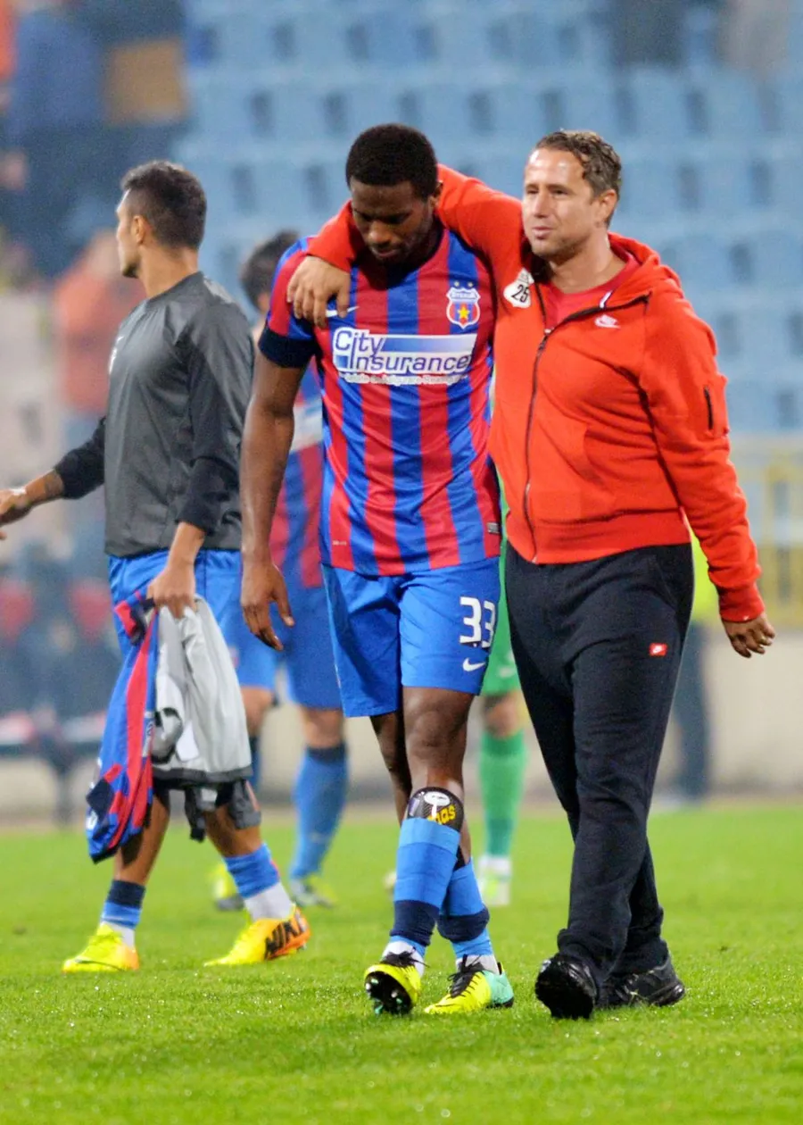Fernando Varela și Laurentiu Reghecampf după victoria celor de la FCSB cu Politehnica Timișoara, 2-0, din Cupa României, 30 octombrie 2013. Sursă foto: SportPictures