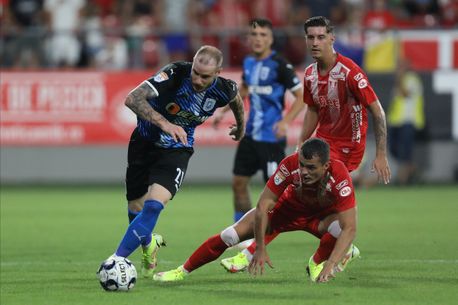 Min. 40. Paul Papp este lovit serios de Shliakov, însă arbitrul nu îl avertizează pe fotbalistul lui UTA.