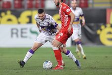 Min. 34: Vukcevic șutează către poarta piteștenilor, însă Latovlevici intervine foarte bine și blochează atacul arădenilor.