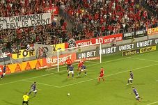 În primele minute ale confruntării cu Rapidul, galeria utistă a afișat prima lor coregrafie de la revenirea echipei în Liga 1 și, bineînțeles, redeschiderea stadioanelor. Pe o pânză imensă, a fost desenată o regină îmbrăcată în alb – roșu, cu sceptrul în mână, semn al puterii în fața supușilor săi. După culoarea straielor, ne-am dat seama că la picioarele stăpânei stau câte un polist, un u-ist (n.red. – suporter al Universității Cluj), un oltean (reprezentan al FC U Craiova) și un rapidist.