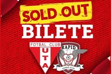 După cum era de așteptat, biletele la meciul de vineri, dintre UTA și Rapid, din cadrul etapei a 8-a a Ligii 1, au trecut ca pâinea caldă la Arad. La finalul zilei de marți, conducerea grupării de pe Mureș a anunțat ocuparea tuturor locurilor puse în vânzare pentru disputa cu giuleștenii, adică 8500, conform protocolului în vigoare ce nu permite ocuparea a mai mult de 75% a capacității arenelor sportive.