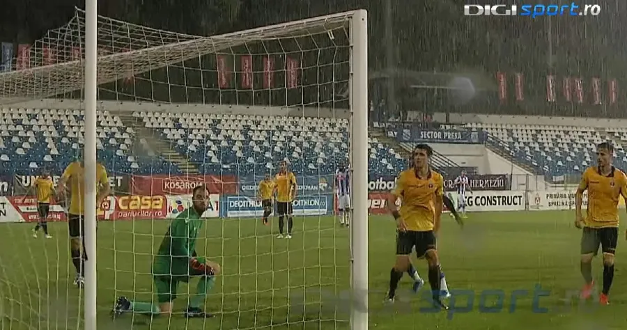 La Iași a plouat torențial înaintea și în timpul meciului, astfel că balonul centrat de Cabral a luat o traiectorie ciudată.