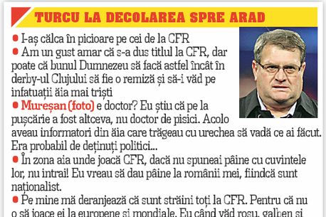 Replica lui Borcea a venit imediat: „Gata! M-am săturat. Vasile trebuie să-și pondereze ieșirile și declarațiile. Face rău lui Dinamo. Jignește! Am hotărât ca nimeni să nu mai facă declarații în afara domnilor Dinu și Rednic“. A urmat victoria cu Steaua, iar rănile scandalului păreau că s-au cicatrizat. Ieri însă, la plecarea echipei spre Arad, Vasile Turcu s-a dezlănțuit iarăși, parcă dorind să-l mulțumească pe bunul său prieten, Gigi Becali. Timp de 15 minute, în fața unui grup de jurnaliști șocați, patronul de la „RomConstruct“ „a măturat“ pe jos cu tot ce înseamnă CFR. Auzind declarațiile lui Turcu, președintele LPF, Dumitru Dragomir, s-a limitat să spună: „Ce zice Turcu dovedește că CFR Cluj nu le-a dat bani dinamoviștilor. Nu pot spune ce se va întâmpla, întrucât comisiile nu sunt la mine“.