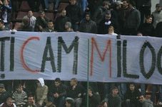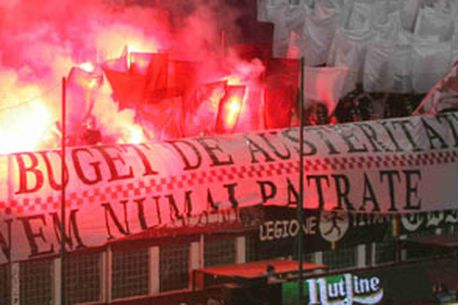 În această seară, fanii "alb-vișiniilor" au afișat un banner cu textul "După "89 nu v-ați schimbat deloc, vă dăm o brichetă să vă dați foc?"