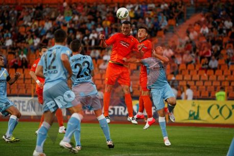 1-0: Velici deschide scorul trimițând mingea în plasă din interiorul careului, după o centrare a lui Constantinescu;
