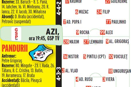 Pandurii: Lazar – Ungurușanu, Ionuț Rada II, Viera, Al. Vlad – Voiculeț, Pintilii, Nistor – Maxim, Lemnaru, Grigoraș
