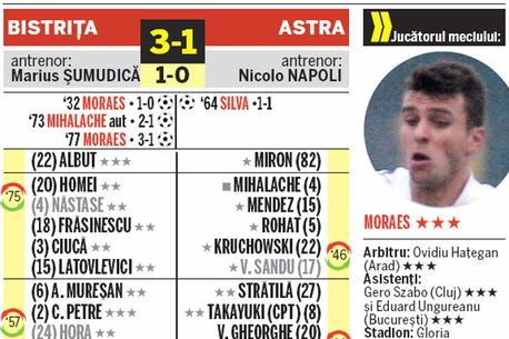 Pentru gazde au marcat Moraes ’32, ’78 și Mihalache ’73