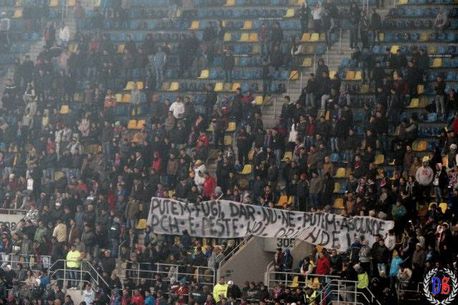 „Putem fugi, dar nu ne putem ascunde / PCH e peste noi oriunde”, a fost mesajul fanilor lui Dinamo, aflați chiar în galeria Stelei.