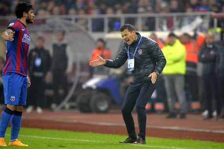 Gâlcă țipă, căpitanul Tănase se justifică. Imagine din derbyul Steaua – Dinamo