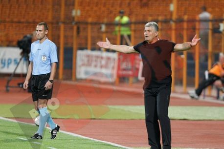 Totodată, e conștient că după ce șefii au pus la zid jucătorii după 1-1 cu Gaz Metan, el e următorul luat în vizor în cazul unui eșec. A simțit asta și când s-a răstit la o reporteriță după primul semi-eșec, ceva ce nu îi stă în fire. Noi, răutăcioșii, am spune că hainele negre pe care le-a ales nu îi stau bine. Mâinile încrucișate așezate în dreptul pieptului sunt un semn de autoapărare. Psihologii așa ar explica. Se gândește la grupele Ligii, dar nu știe dacă le va vedea iar de la televizor de parcă a fost lovit de același blestem ca echipa iubită, Dinamo. Iar filozofăm.