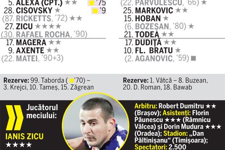 a timișorenilor. Cele două goluri înscrise de vedeta Timișoarei au