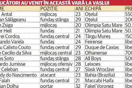 Cu Falah, trupa galben-verde a ajuns la un nou record în ceea ce privește achizițiile unei formații de Liga I și nu pare să se oprească aici. Moldovenii au cumpărat nu mai puțin de 14 jucători în această vară, depășind și numărul maxim de transferuri pe care Vaslui le-a făcut într-un singur sezon. La mare căutare pentru Porumboiu au fost fundașii, opt fotbaliști fiind aduși pe acest post, în acest moment, cei de la Vaslui dorind să mai transfere un portar și un mijlocaș ofensiv.