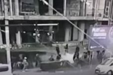 Pe filmare se poate observa cum ultrașii lui Dinamo coboară din mașini și aleargă înspre fanii Oțelului. Aceștia au aruncat și cu torțe în plină stradă.