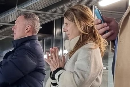 Dorinel Munteanu, antrenorul echipei Oțelul Galați, nu a putut fi alături de elevii săi la meciul cu Dinamo, însă soția acestuia s-a rugat din tribune pentru o victorie.