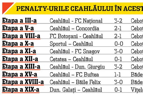 Astfel, trupa lui Gheorghe Ștefan a reușit să câștige patru partide după lovituri de pedeapsă decisive și a scos încă trei rezultate de egalitate datorită arbitrilor care au arătat punctul cu var. Partida de sâmbătă, de la Galați, le-a adus a zecea astfel de lovitură de la 11 metri, Andrei Vițelaru fiind cel care a reușit să transforme penalty-ul și să consolideze poziția echipei nemțene în fruntea clasamentului, Ceahlăul distanțându-se la șase puncte de ocupanta poziției secunde, Delta Tulcea.