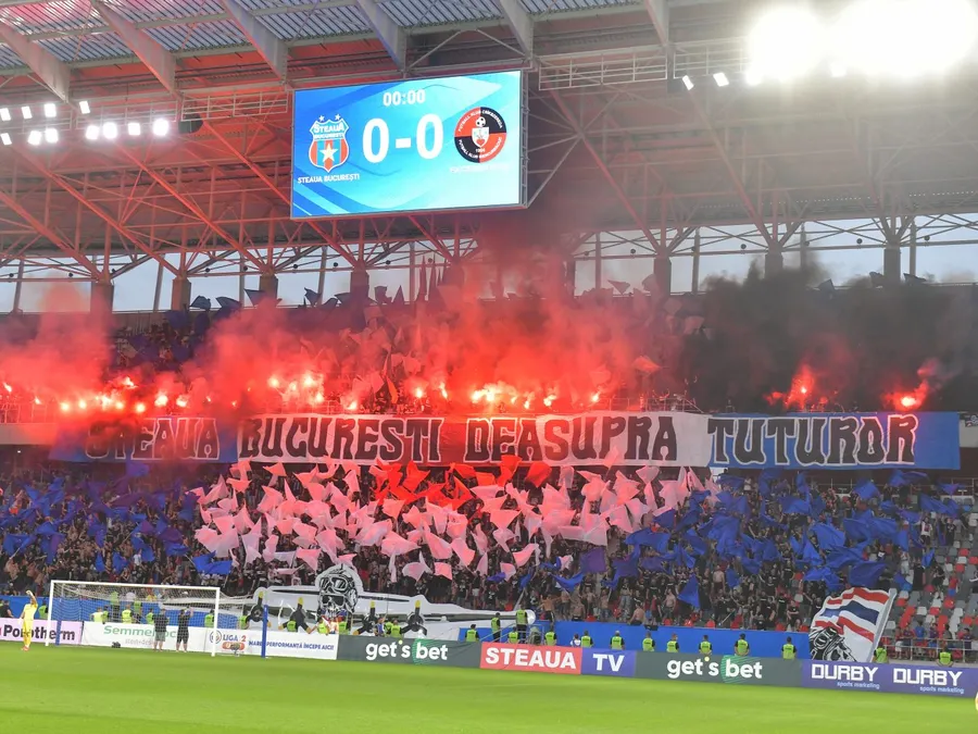 Scenografia suporterilor roș-albaștri la meciul Steaua – FK Csikszereda, din prima etapă a Ligii 2. Sursă foto: SportPictures