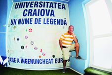 spatele biroului său, printre sute de hârtii, patronul Craiovei