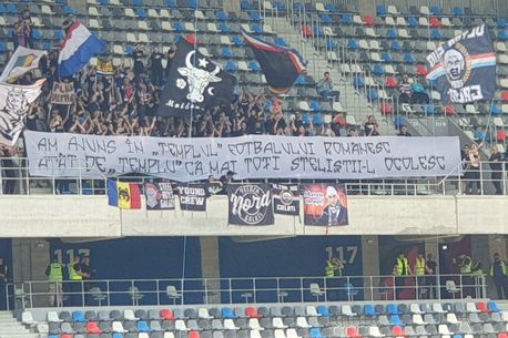 Ei au afișat un mesaj la un moment dat în timpul jocului, prin care i-au ironizat pe steliști pentru media scăzută de spectatori înregistrată în acest sezon la meciurile de pe teren propriu.