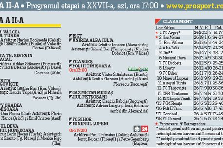 Dacă vor învinge astăzi, în deplasarea cu CSM Focșani, și sâmbătă, pe teren propriu cu FCM Câmpina, elevii lui Răzvan Lucescu își mențin avansul de 19 puncte față de Petrolul Ploiești, ocupanta locului trei, și obțin promovarea matematică. De altfel, chiar antrenorul ploieștenilor, Eusebio Tudor, a recunoscut că nu mai poate atinge promovarea: “E mare păcat că am dat cu piciorul la toată munca din această primăvară. Nu mai avem șanse la promovare“.