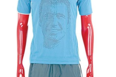 Albastru complet, cu doar două dungi albe la baza gâtului, tricoul are inserat în partea din față chipul lui Gică Hagi, compus numai din cifrele 0 și 1.