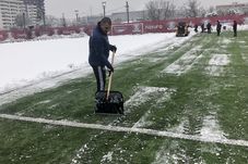 Suprafața de joc era acoperită de zăpadă, iar jucătorii au fost nevoiți să treacă la munca „de jos” și să curețe terenul pentru a putea disputa partida.