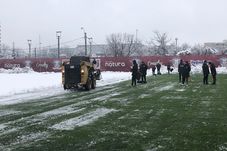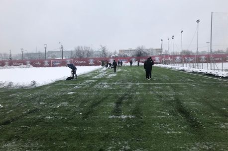 Rapid și U Cluj și-au programat o partidă amicală, însă jucătorii au făcut o altfel de încălzire. Aceștia au fost nevoiți să dea zăpada de pe suprafața de joc.