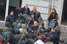 Fanii s-au lovit însă de opoziția celor doi bodyduarzi ai patronului oltean, care au rezistat eroic în fața asaltului până la sosirea forțelor de ordine. În cele din urmă, jandarmii au degajat zona și au reușit să prevină eventualele incidente neplăcute.