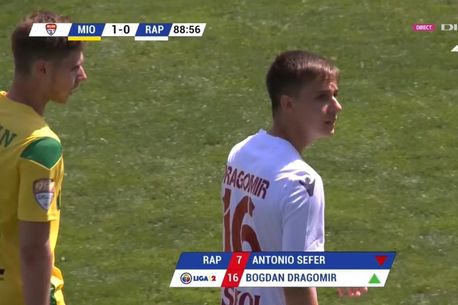 Bogdan Dragomir, fundașul dreapta în vârstă de doar 17 ani de la Rapid București și nepotul lui Dumitru Dragomir, fostul președinte al Ligii Profesioniste de Fotbal, a debutat la prima echipă în meciul cu CS Mioveni, scor 0-1.