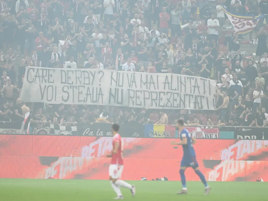 Pe Arena Națională, spectacolul a fost unul mai mare în tribune, ultrașii celor două formații având un război crâncen dat prin bannerele afișate.
